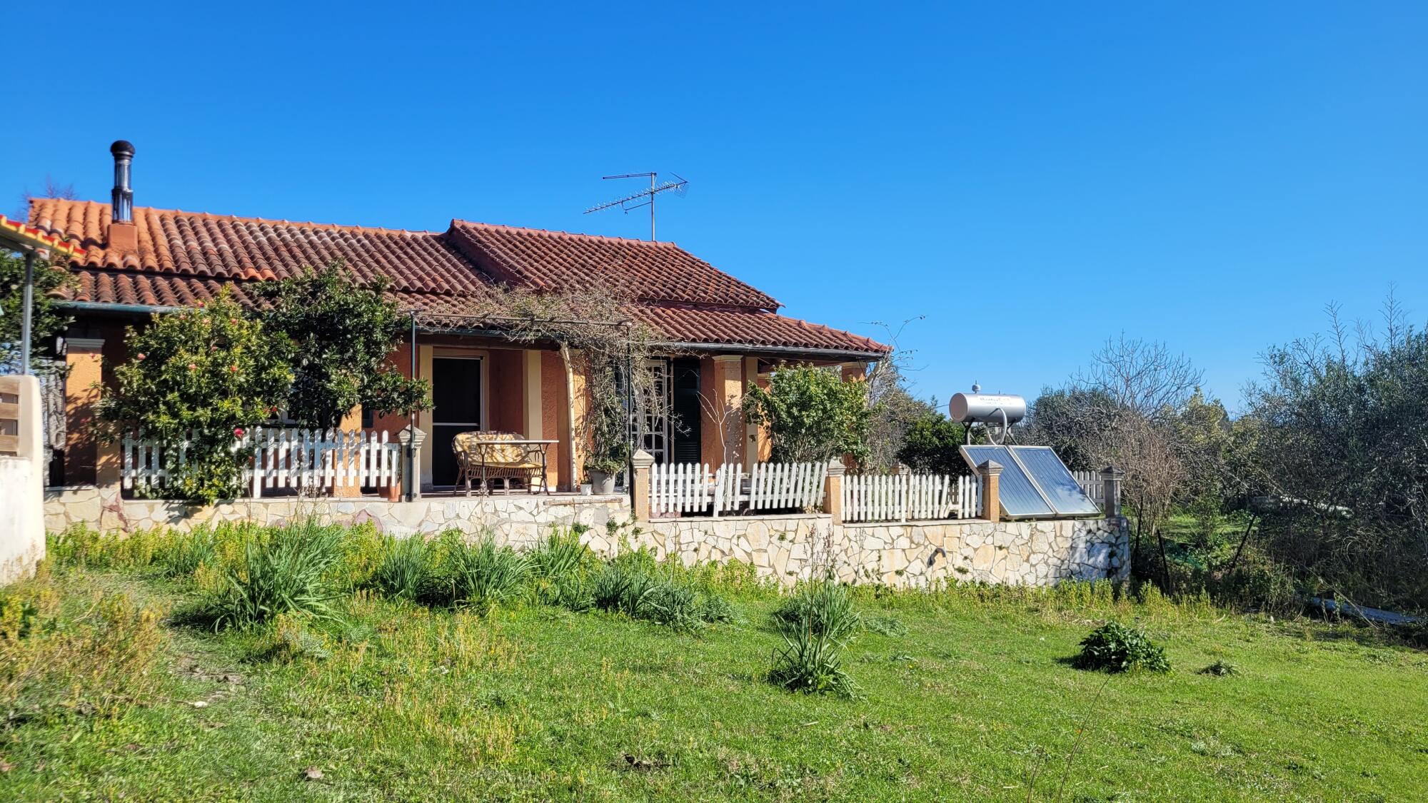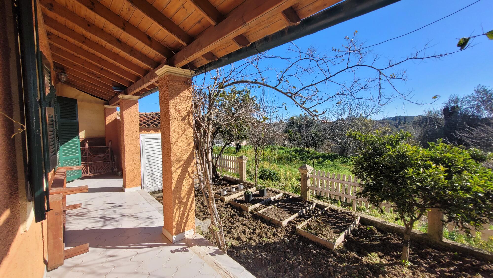 A charming detached house of 64.75 sq.m. located in the traditional village of Perivoli, South Corfu. Set on a 350 sq.m. plot, the property is in excellent condition and ready to move in, offering comfort, privacy, and future development potential. The house combines functionality with a warm atmosphere, featuring a fireplace, covered terraces, and direct access to the garden from the bedrooms — ideal for relaxed village living.